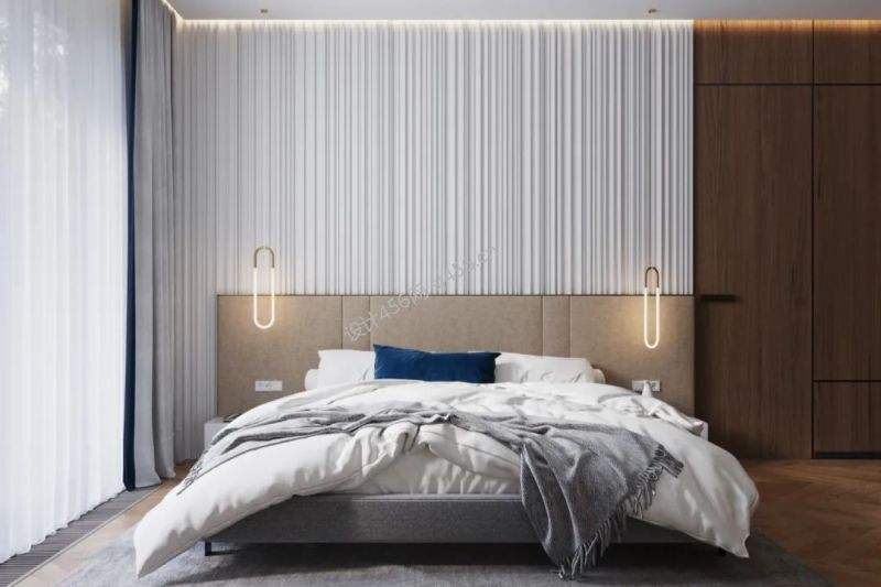 现代简约风格140平米三居室主卧室床头背景墙图片
