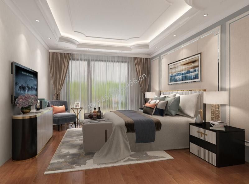 150平米三居室简欧风格卧室天花板装修案例图片