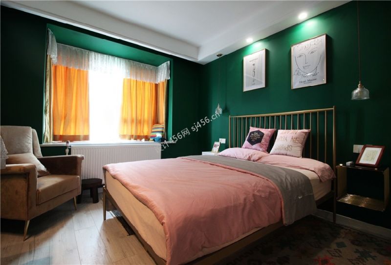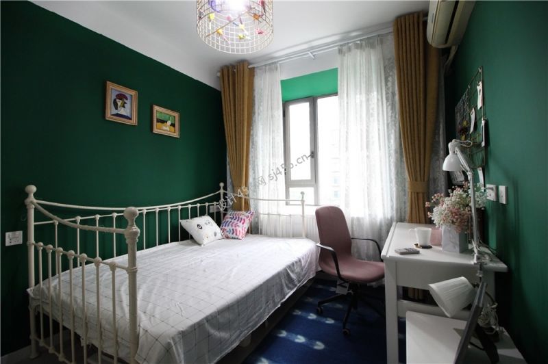 125平米北欧风格三居室次卧室窗帘装修设计图