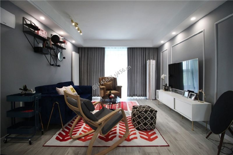 详情125平米北欧风格三居室客厅天花板装修效果图