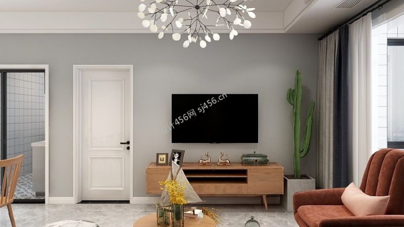 95平米北欧风格三居室客厅电视柜布置装修案例