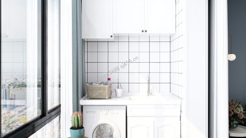 95平米北欧风格三居室阳台洗衣机柜子装修图片