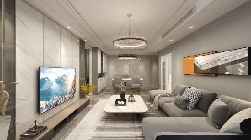详情118平米三居室现代轻奢风客厅布置设计效果图