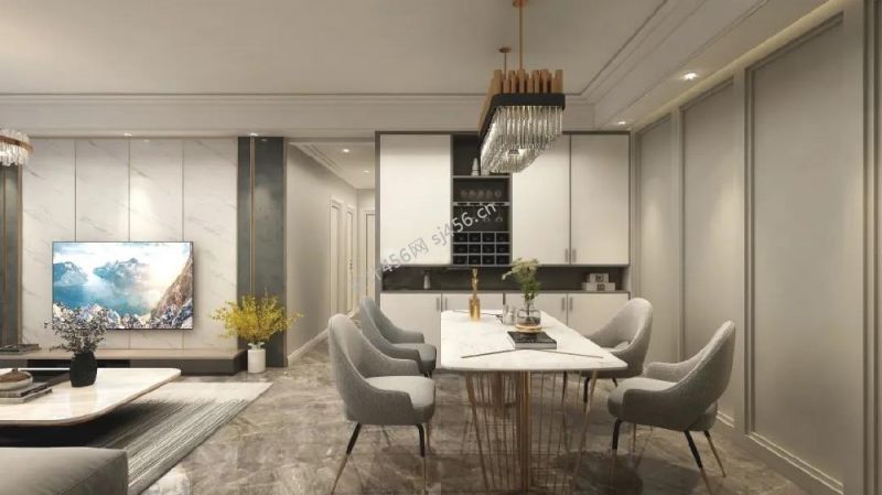 118平米三居室现代轻奢风餐厅酒柜装修设计图
