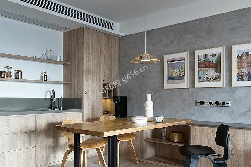 85平米三居室简约风格餐厅背景墙挂画装修设计图