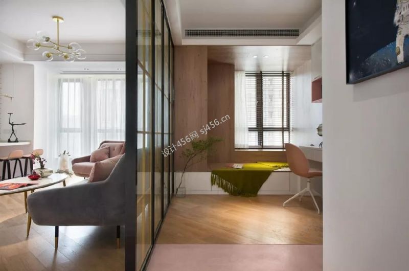 98平米北欧风格三居室书房隔断设计装修实景图