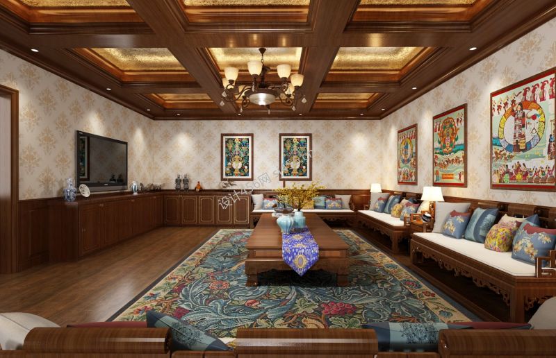 1300平米沉稳风格三居室佛堂设计装修案例图片