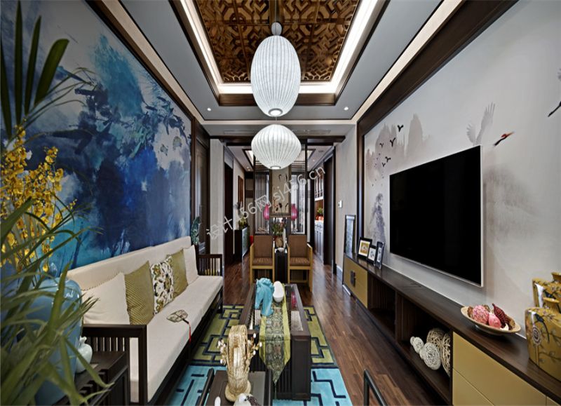 新中式风格169平米四居室客厅软装设计图片