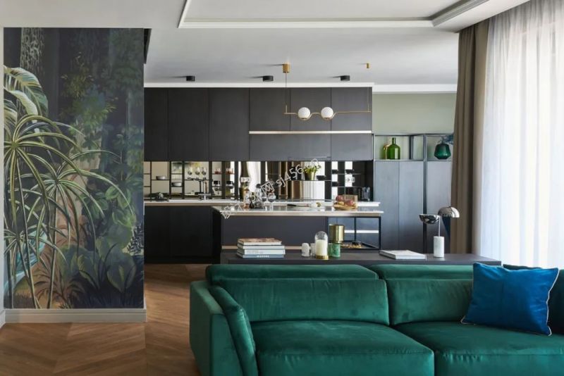 100平米三居室现代轻奢风格开放式厨房装修图片
