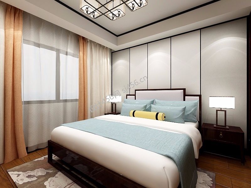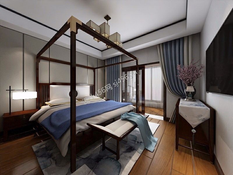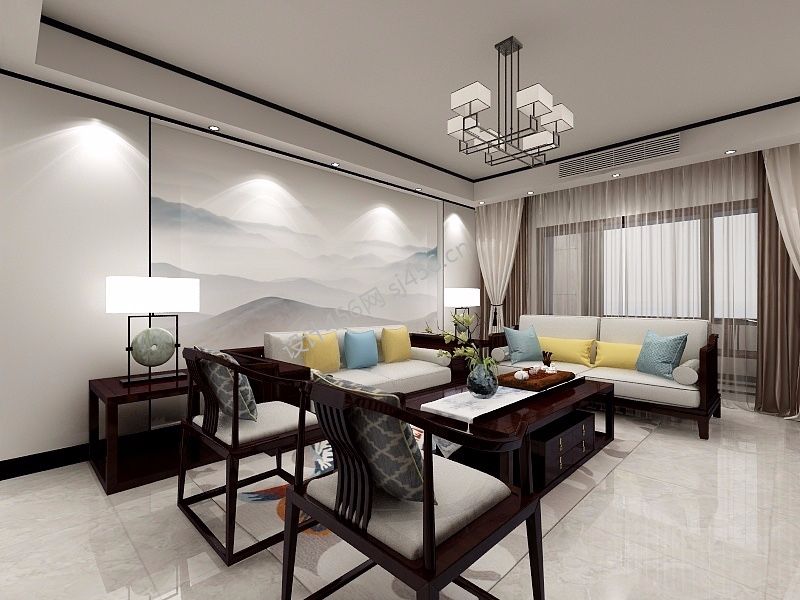 新中式风格95平米二居室客厅窗户窗帘装修效果图