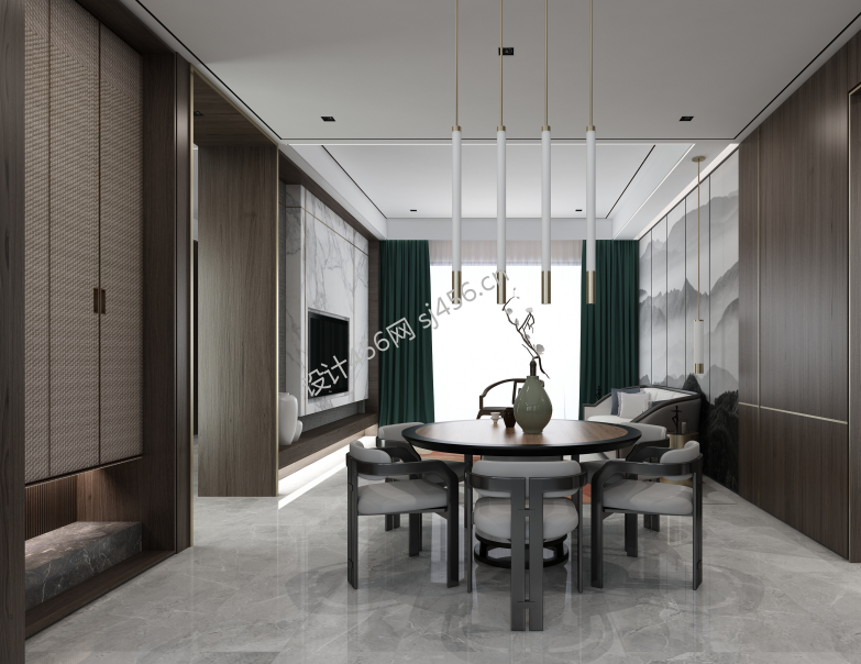 新中式135平米三室两厅餐厅装修效果图