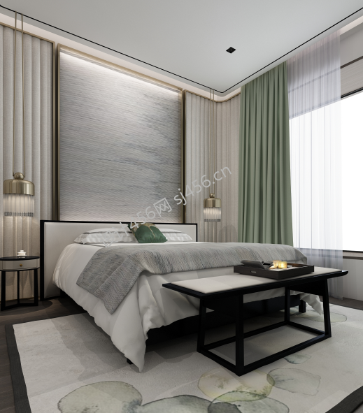 新中式135平米三室两厅卧室装修效果图