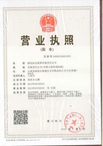 临沧拓达装饰有限责任公司成立于2009年12月,是一家设计理念超前、材料使用环保、施工组织严谨、管理专业化、售后服务周到的一体化装饰公司,承接家居装饰、商业空间、休闲空间、写字办公楼等场所的装饰装修工程项目。 公司精英管理团队10人,施工技工班组20组,科学合理的分专业化实现装饰产品,充分体现协调配合的组织效能。拓达人为自已制订了约束自律的规章制度,形成了符合市场情况的工程施工质量管理体系和验收标准,采取施工与质检分离的管理方法,严格实行工序三检(自检、互检、交接检)制度。信俸以质量求生存,以信誉求发展的硬道理。拓达人始终把每一项工作当作自家的事来对待,始终秉承“品质感动客户,客户塑造品质”的经营理念。强力提倡严谨的工作作风、诚实的工作态度和细致周到的服务,赢得了广大客户信任,让拓达理念得以淋漓尽致的体现。 在装饰这个日新月异、不断发展的行业中,拓达装饰坚持以居住性为首位,充分考虑人性、感性、理性统一性,着眼于功能与装饰完美结合,走打造绿色空间,具有拓达特色的“品牌营销”之路。以达到实现“拓达品牌”成为拓达核心竞争力的理想,并不断把成绩作为新的起点,不断审视自己,完善自己,超越自己。