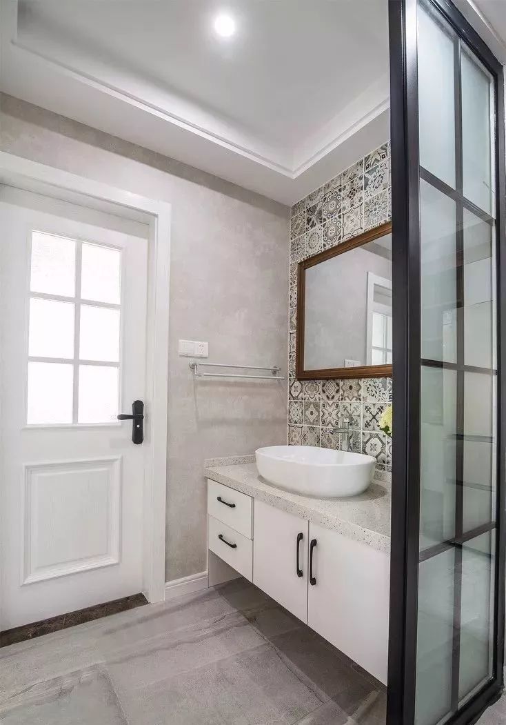 卫生间将浴室柜装在门外,这样洗漱更卫生。