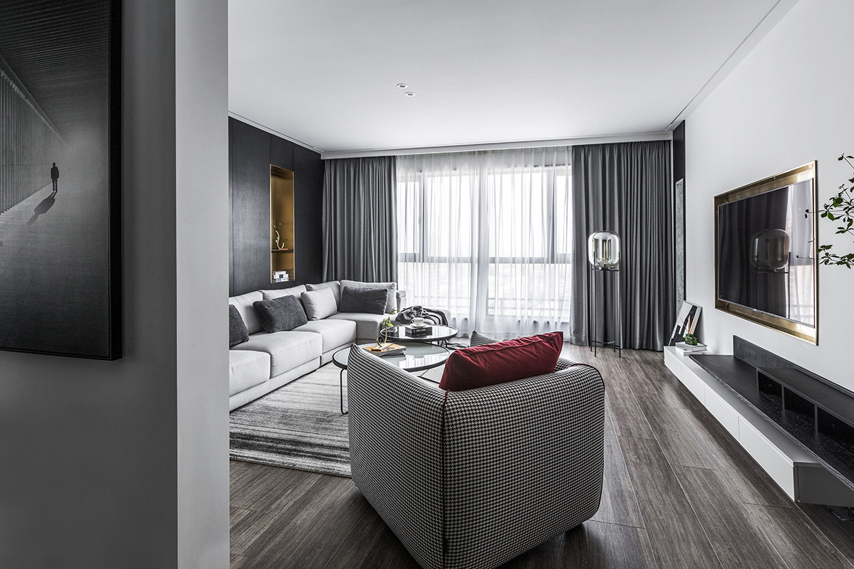 空间板块线条的比例到位,简约又不失精致。偌大的窗,框出了最美的风景,明亮的光透过柔软的窗纱,让生活带着些许惬意。