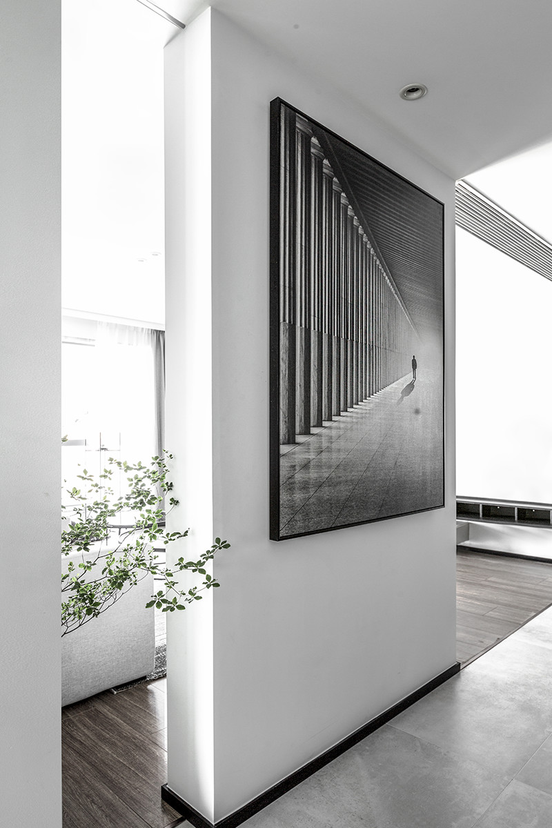 客厅天花、地面、材质界定空间领域,营造着视觉与触觉的感官差异。