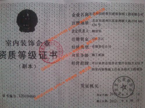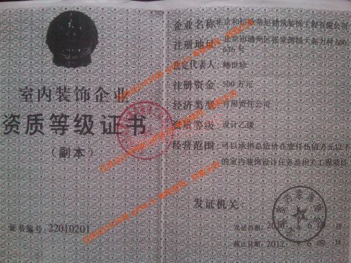 室内装饰资质等级证书