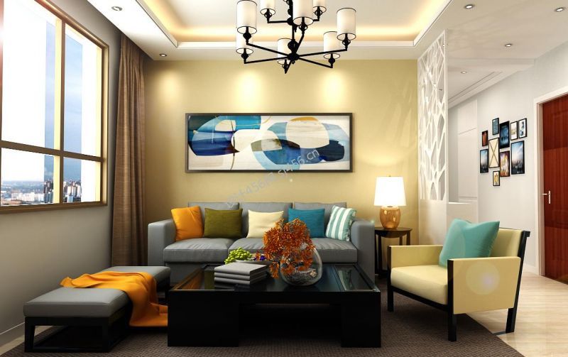 125平三居现代风格客厅沙发背景墙设计