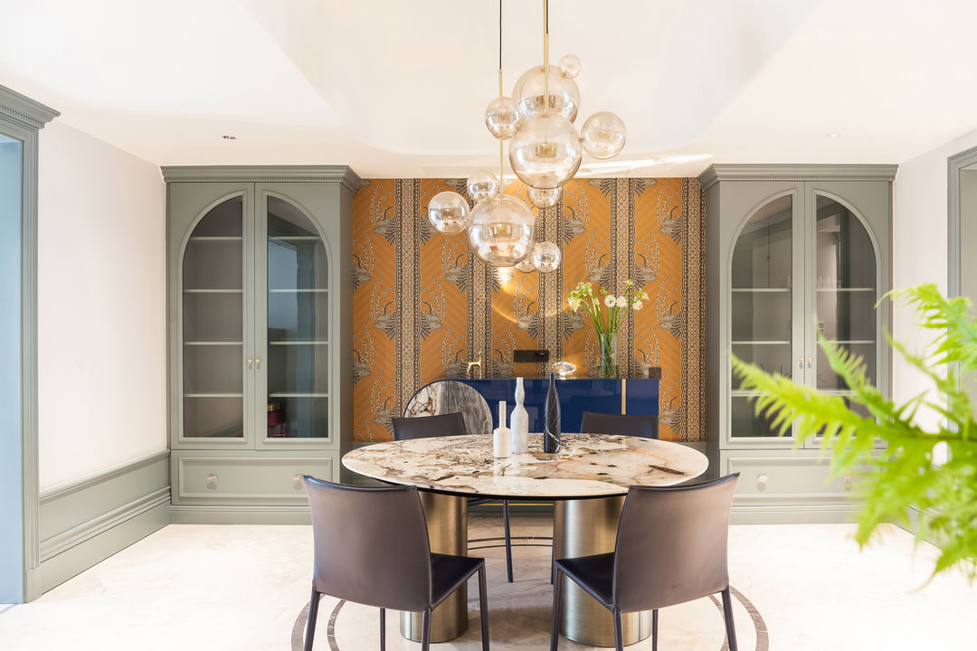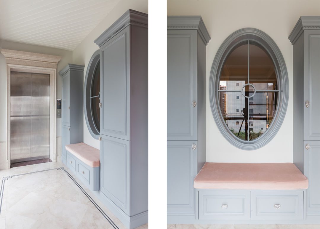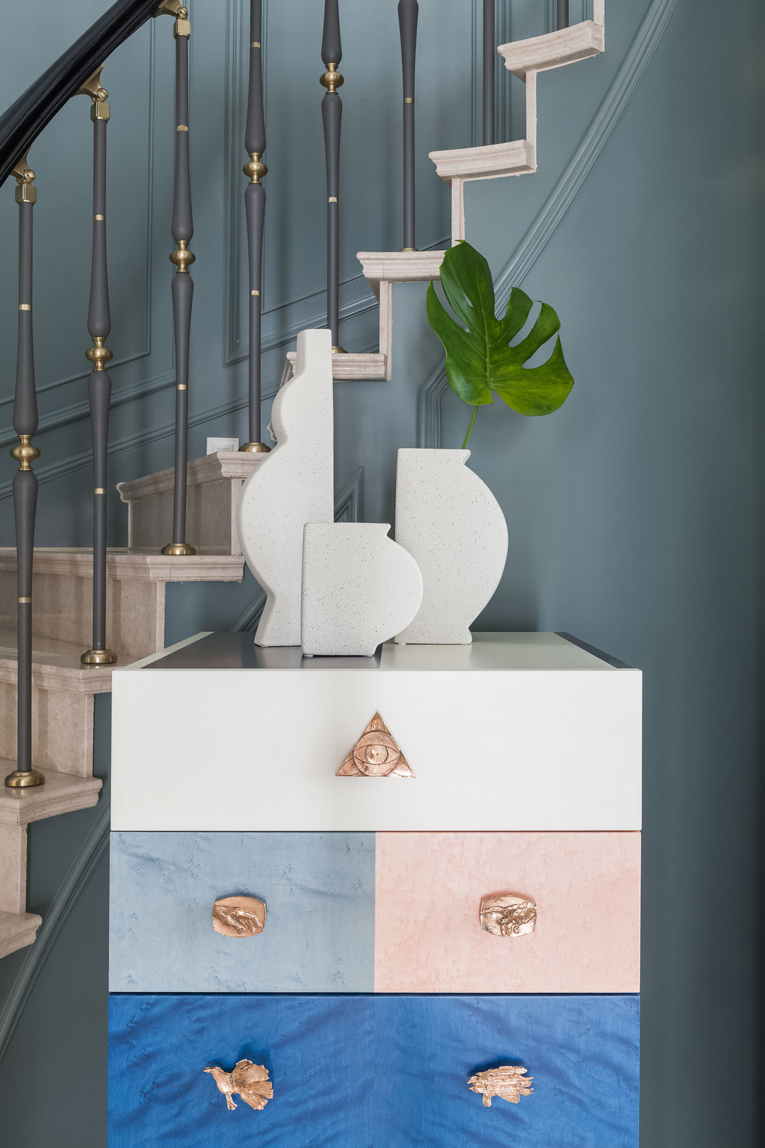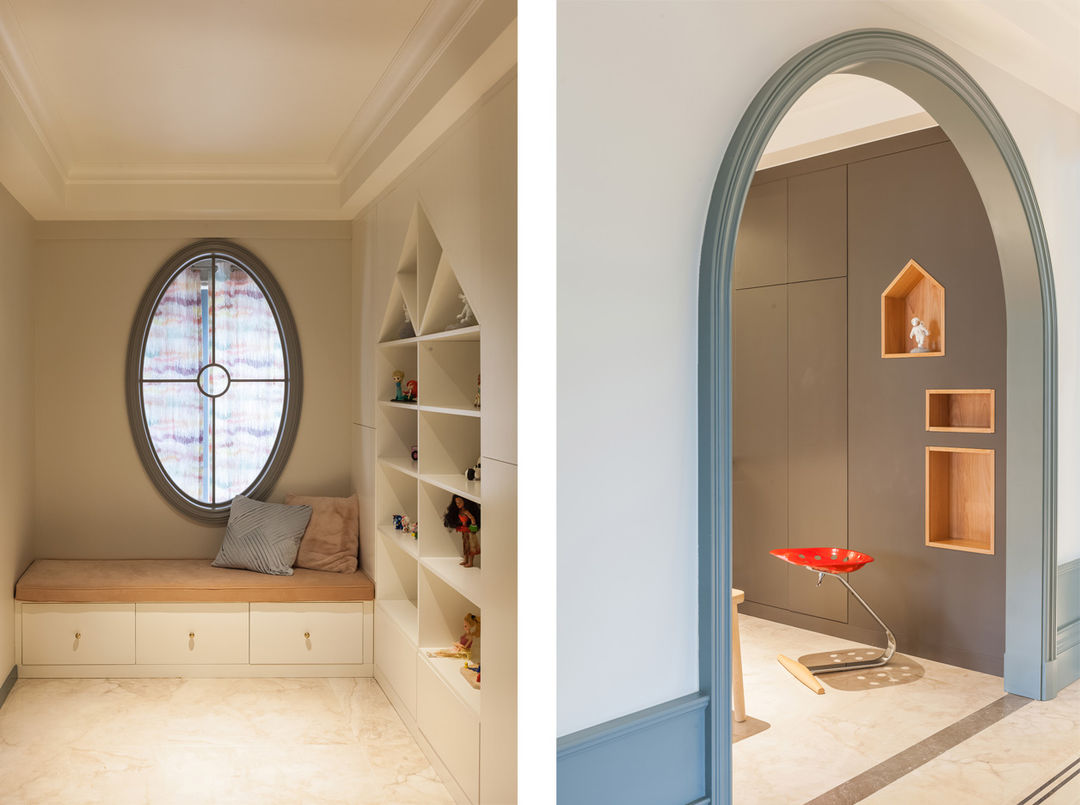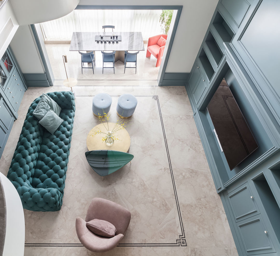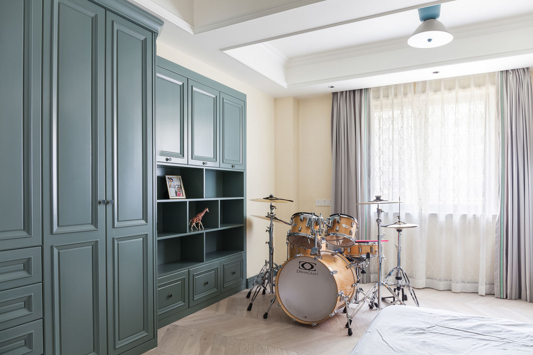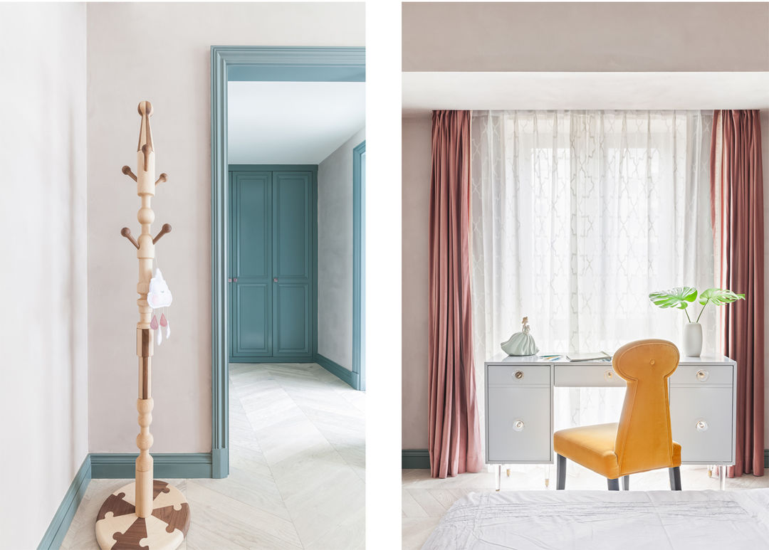 我们以绿灰的主色调加入一些现代感的轻奢元素,汲取美式中温情的部分,摈弃过于厚重怀旧的形体表现,用优雅的现代美式来打造这套复式叠墅。