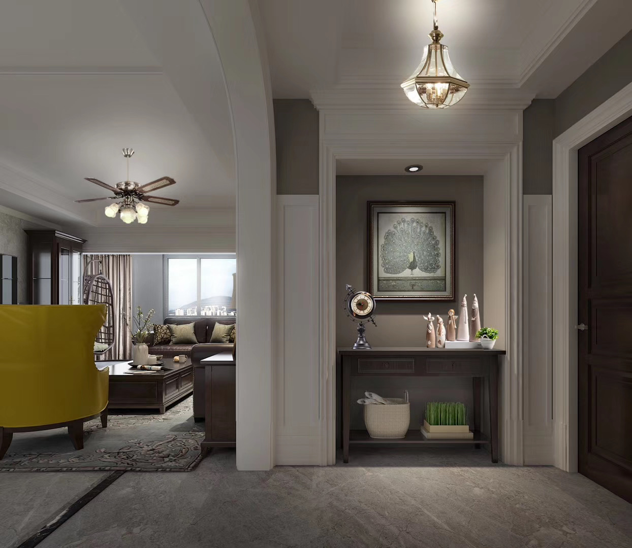 这是一个现代美式三居,设计师在设计的过程中,依照现代设计的简洁出发,同时将功能区进行细分,做到了空间性和实用性并续,满足主人对空间的需要;色调上,以莫迪兰为主,搭配中性色或米色,让空间变化出清暖、柔和之感,给人一种淡然,温馨的感觉。