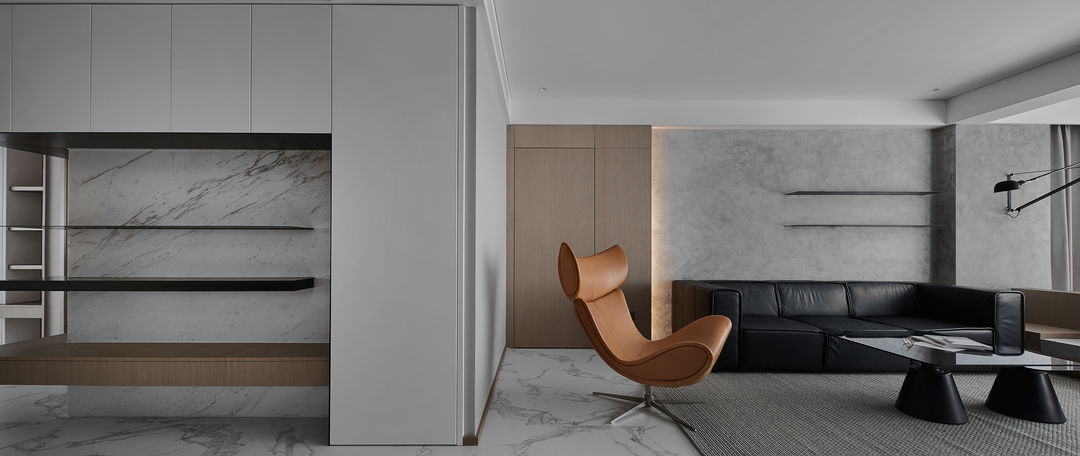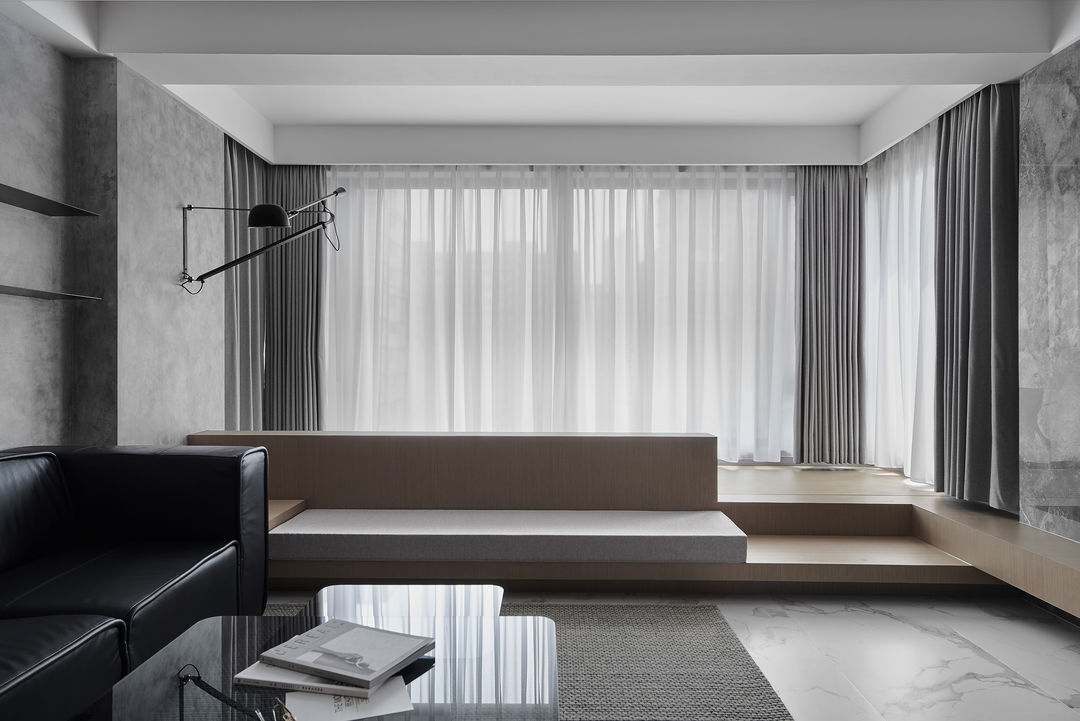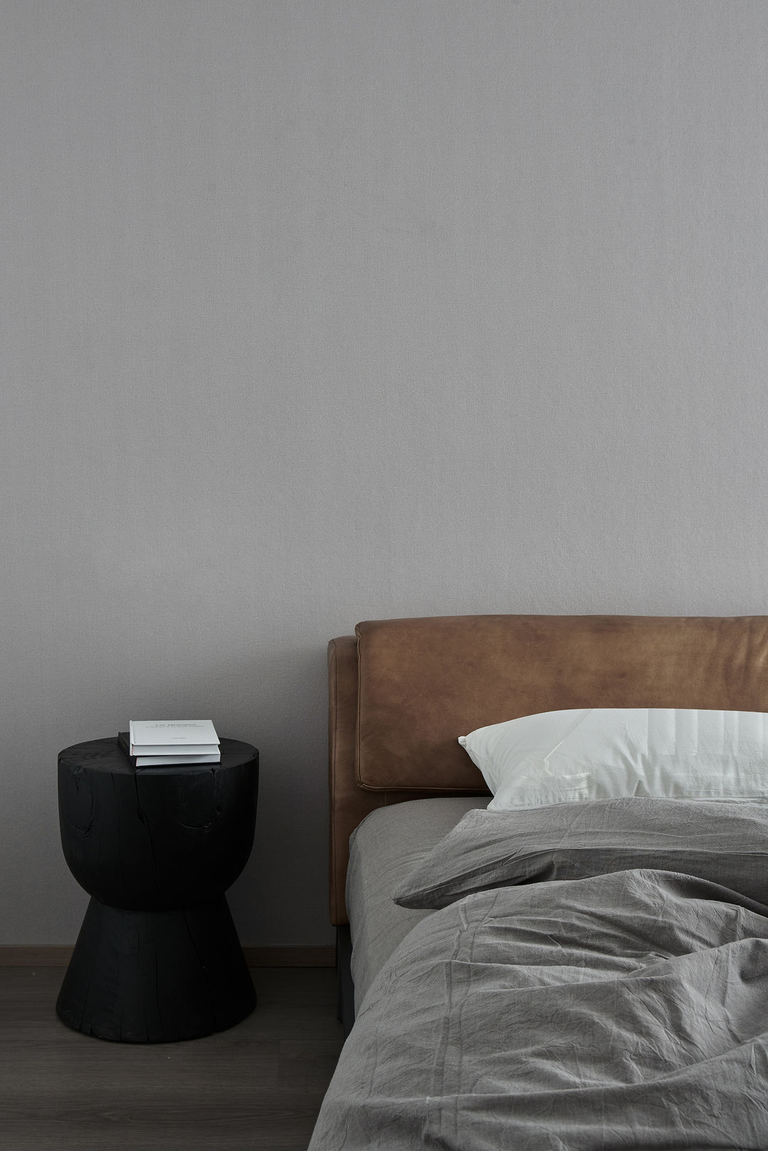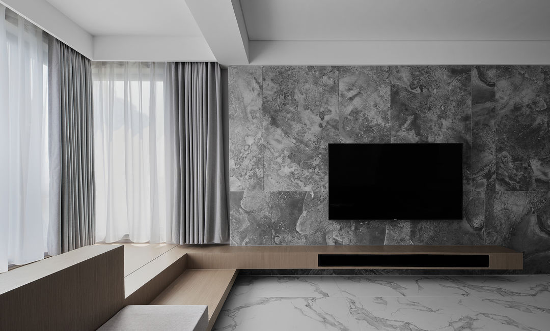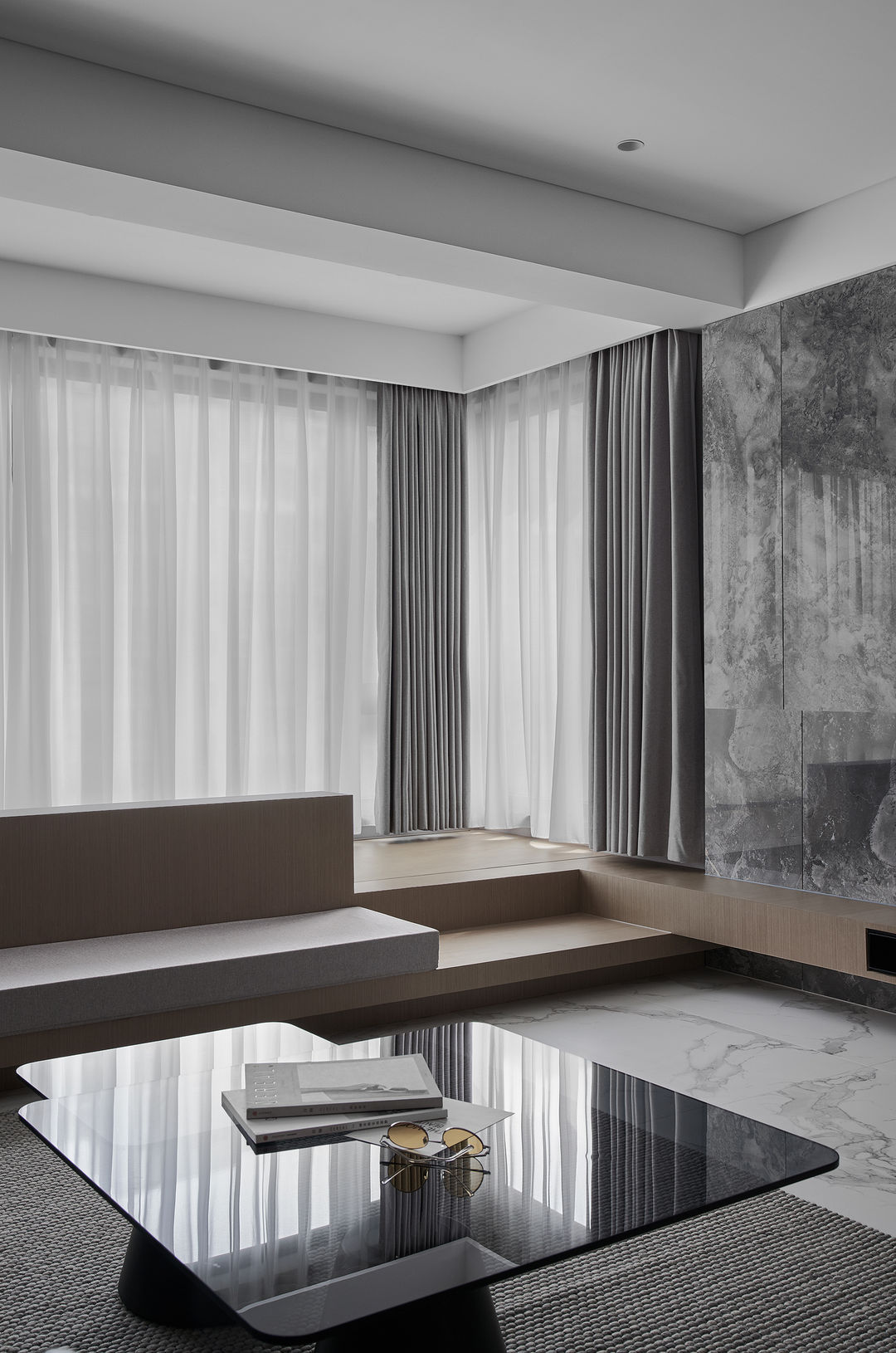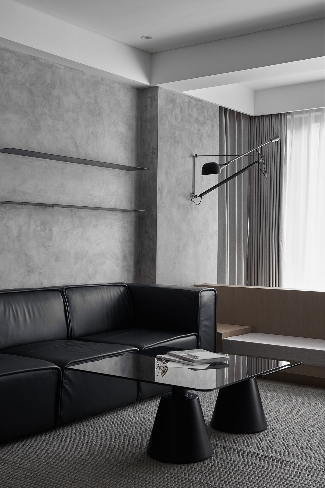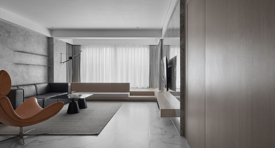 此案整体设计概念,我们以灰色、木皮色为主轴,以求机能合并却依然拥有单纯简约的空间本质。在空间色彩上,业主喜欢温润柔和的视觉感受,同时注重居家材料与客厅视野,所以使公共区域更加宽阔舒适是本案的设计要点。同时业主赶在短工期内需要完工这个项目,所以对整屋的材料控制和时间把控要求非常精准。