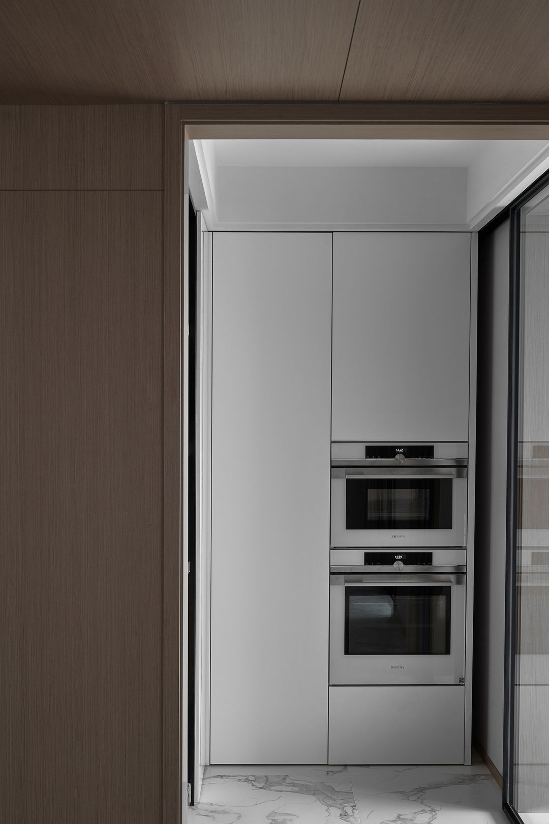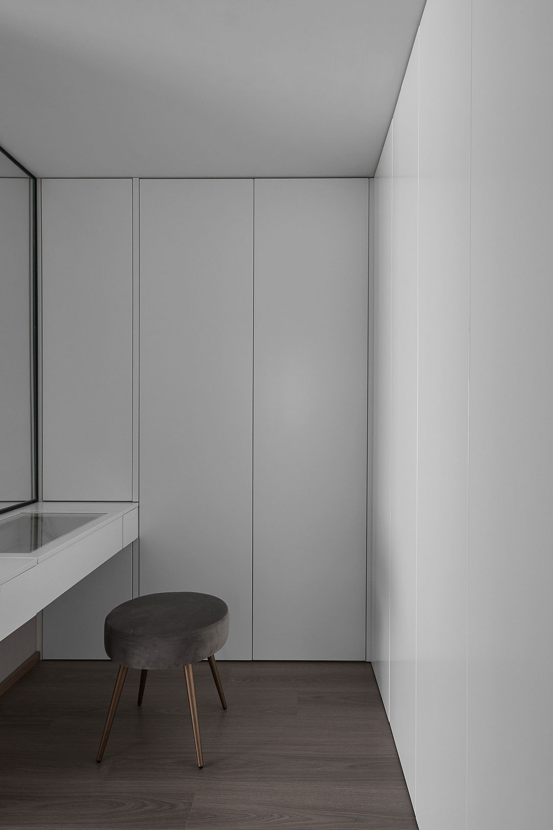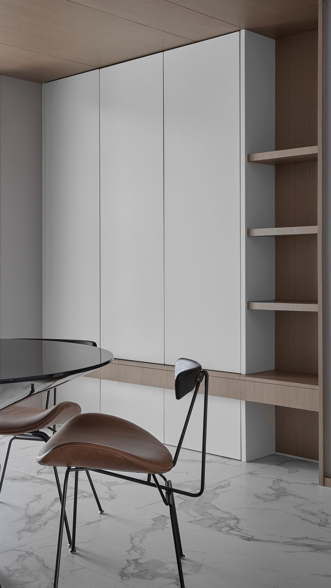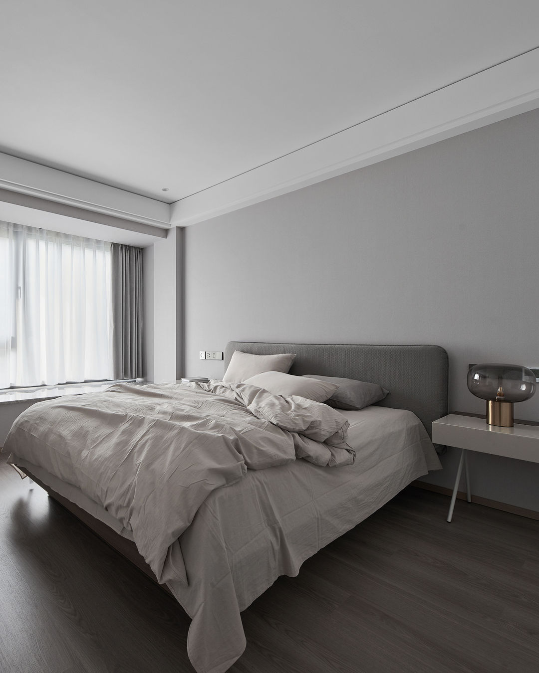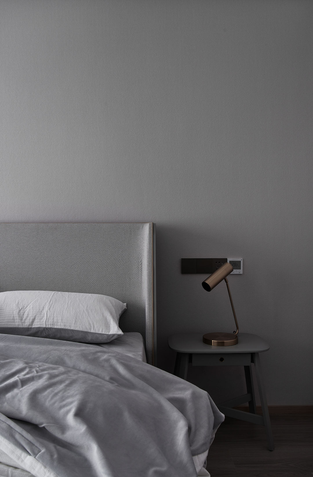 此案整体设计概念,我们以灰色、木皮色为主轴,以求机能合并却依然拥有单纯简约的空间本质。在空间色彩上,业主喜欢温润柔和的视觉感受,同时注重居家材料与客厅视野,所以使公共区域更加宽阔舒适是本案的设计要点。同时业主赶在短工期内需要完工这个项目,所以对整屋的材料控制和时间把控要求非常精准。
