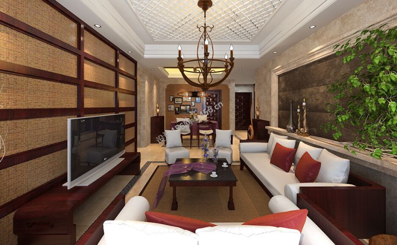 三居115平东南亚风格客厅装修效果图