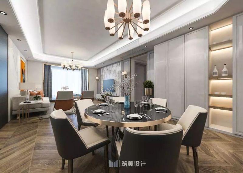 详情现代轻奢风格145平四居室餐厅墙面柜装修效果图