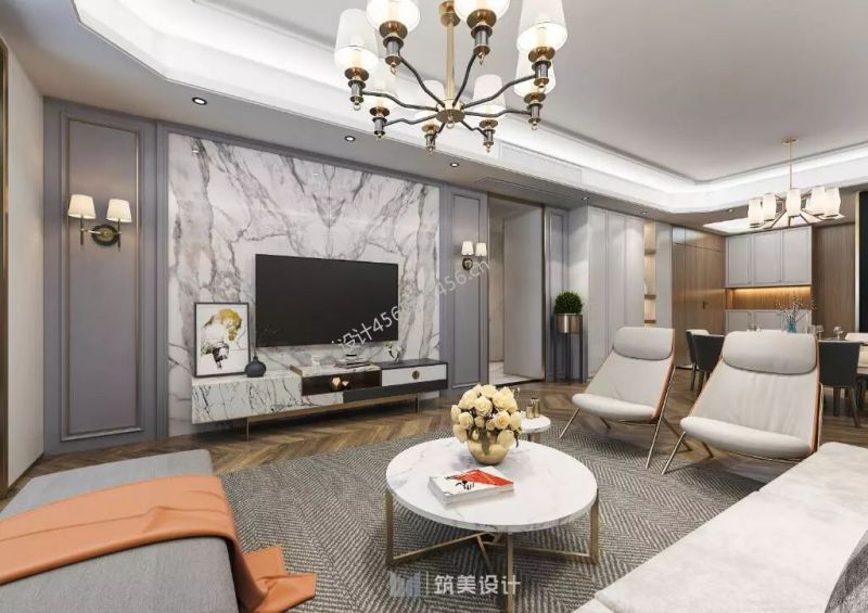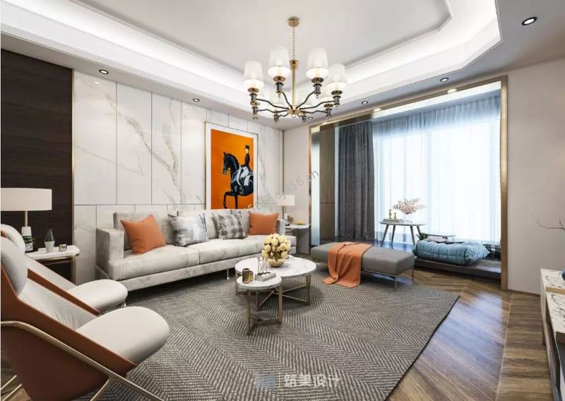 现代轻奢风格145平四居室客厅壁灯装修效果图