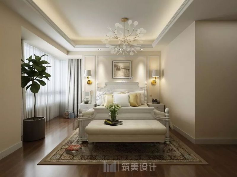 现代轻奢风格145平四居室卧室墙面挂画装修效果图