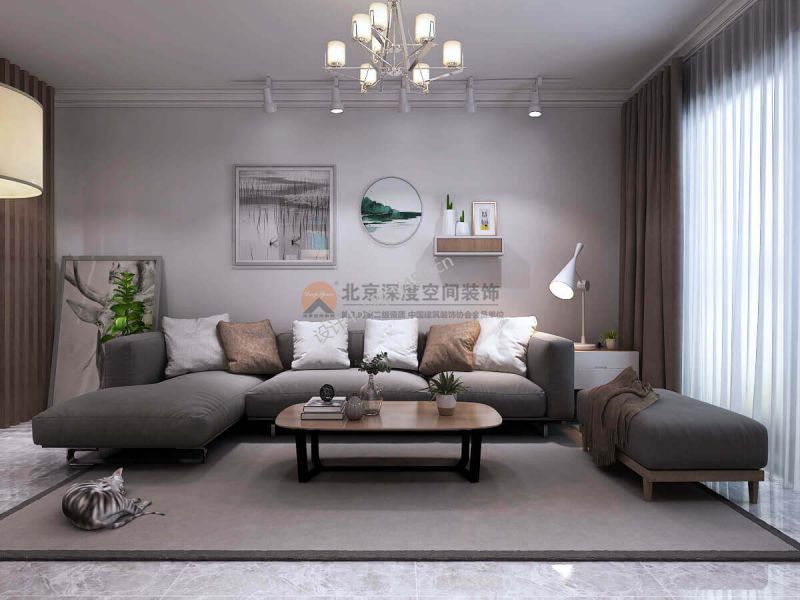 杨柳郡60平后现代风格客厅布艺沙发效果图欣赏