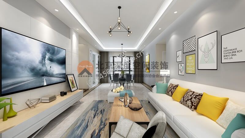 正和城80平现代风格客厅白色沙发背景墙装修图片