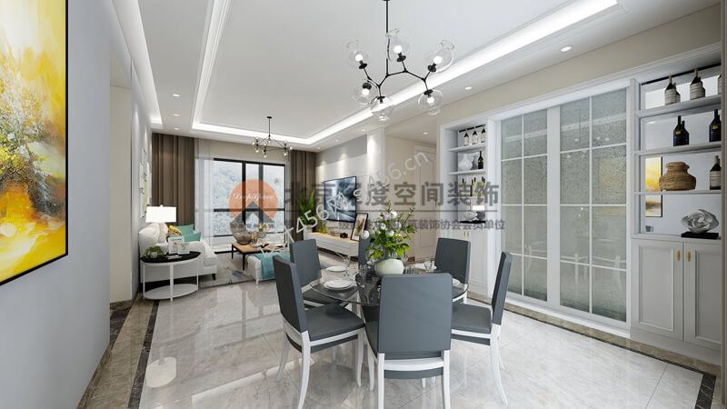 正和城80平现代风格家庭餐厅吊灯装修图片欣赏