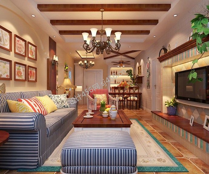 田园风格120㎡三居客厅电视背景墙家装效果图