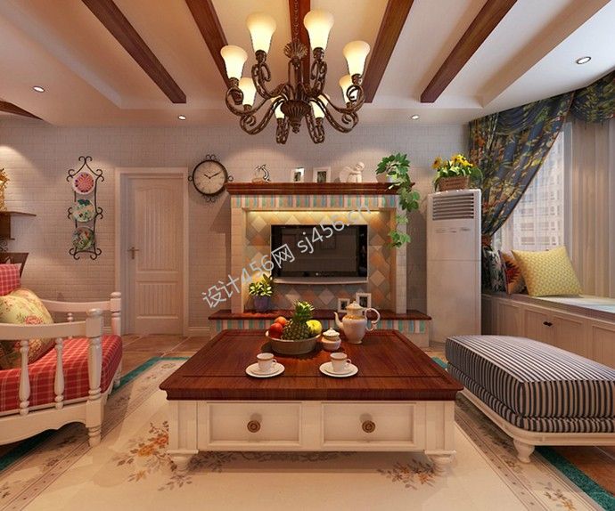 田园风格120㎡三居客厅茶几家装效果图