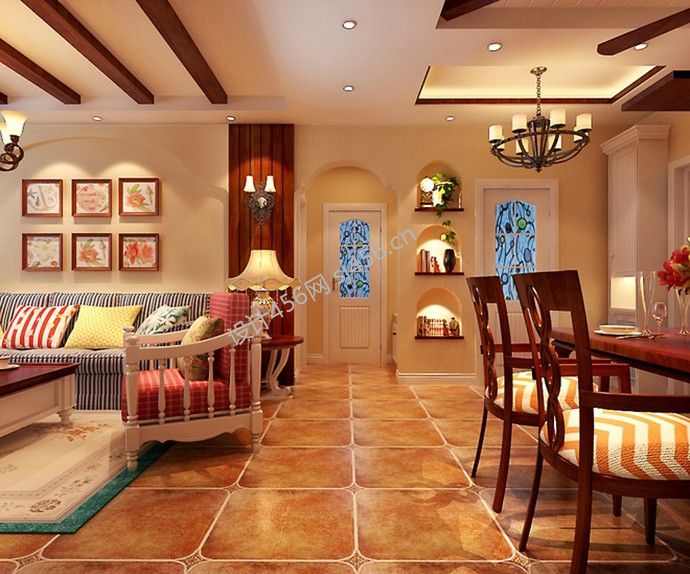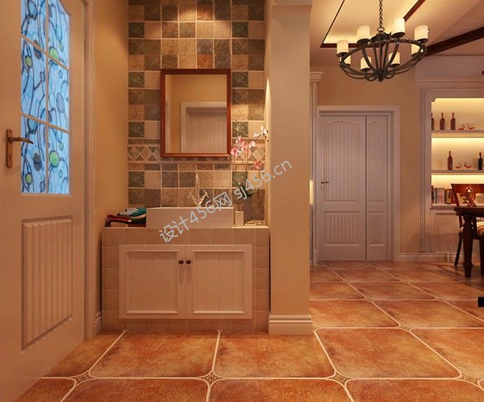田园风格120㎡三居过道地砖家装效果图