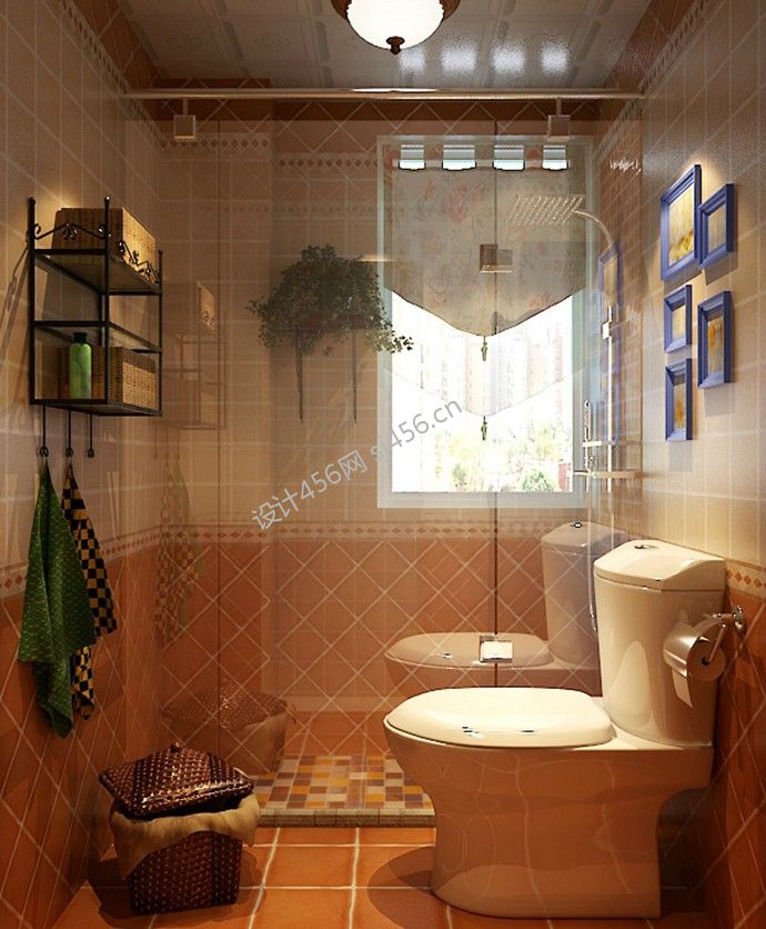 田园风格120㎡三居卫生间置物架家装效果图