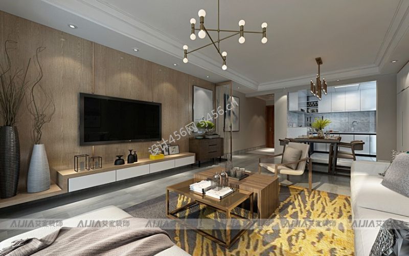 98平米二居室家居客厅沙发墙挂画装修效果图