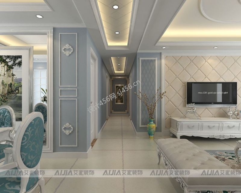 欧式风格101平米三室两厅过道背景墙装修效果图