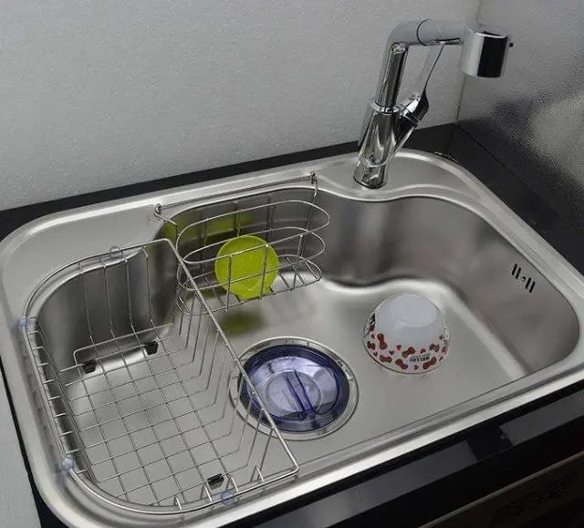 4.选择单盆要加沥水篮和移动不锈钢水槽,厨房面积有限,选择双盆推荐大小双槽,且大水槽的长度≥35cm,最好使用抽拉式水龙头;