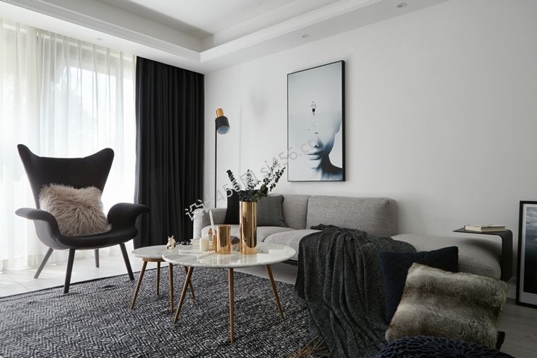 北欧风格107平米三室两厅客厅装修效果图