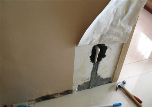 3、若是在卫生间的墙壁上出现漏水的情况,那么有可能是由于使用的时间久了,导致的水管老化,造成的漏水,这个时候需要将漏水的那个区域的墙壁砸开,然后将老化的水管替换掉就可以了,然后在对该范围内的墙面进行防水层重做,就好了。