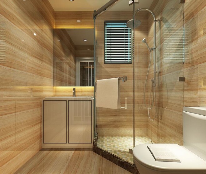 面积小的卫生间,也应该做好干湿分离。因为小的卫生间更容易潮湿,滋生细菌等等,要保持环境的干燥。如果卫生间的空间实在太小的话,不建议做玻璃淋浴房的干湿分离,因为这样太占地方,可以用浴帘、挡水条等,这样不会占太多空间,而且使用起来更灵活。