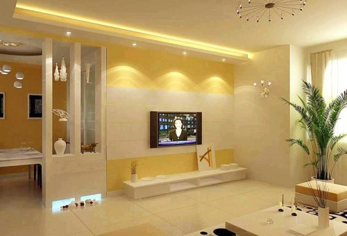 如果你是使用了亮丽的色彩和各种饰线这样可以起到充实点缀作用,要注意在客厅内家具摆放最好做到简洁却不失单调,电视墙墙体的主色调可以考虑用橙色、天蓝色、紫色等这些比较亮丽色彩来做会比较好,如果用色再大胆一些,那么就可以使用两种对比强烈的色彩进行搭配,这种就是适合那些追求个性的年轻人使用。