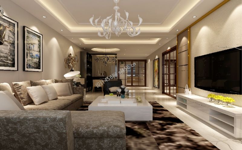 现代简约风格95平客厅灯具效果图片