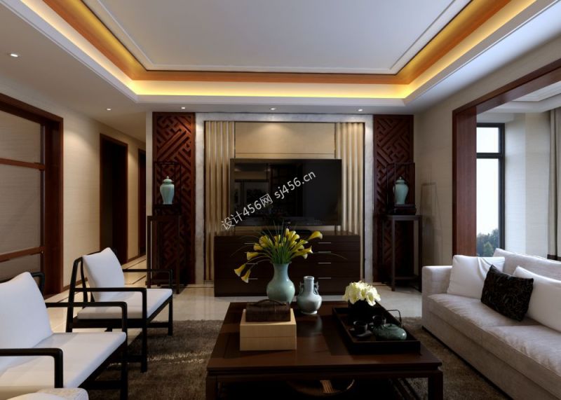 涪滨映像120㎡新中式客厅装修效果图