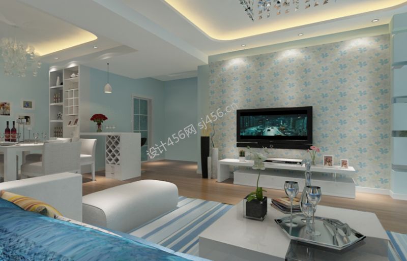 99平米现代风格三居室餐厅客厅一体家装效果图