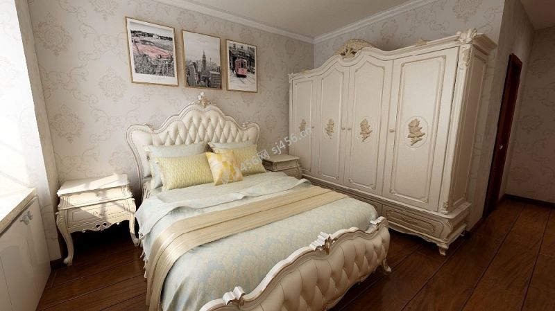 116㎡欧式风格三居室卧室背景墙装修效果图
