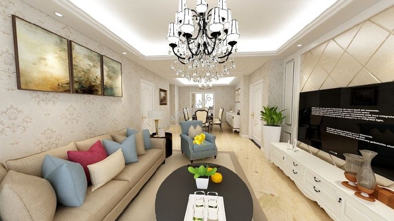 116㎡欧式风格三居室客厅吊顶装修效果图