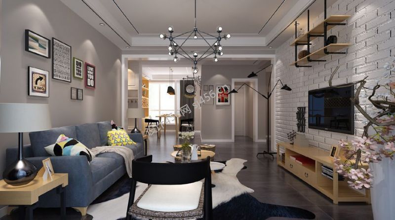 工业风格83平米两居室客厅背景墙装修设计图片